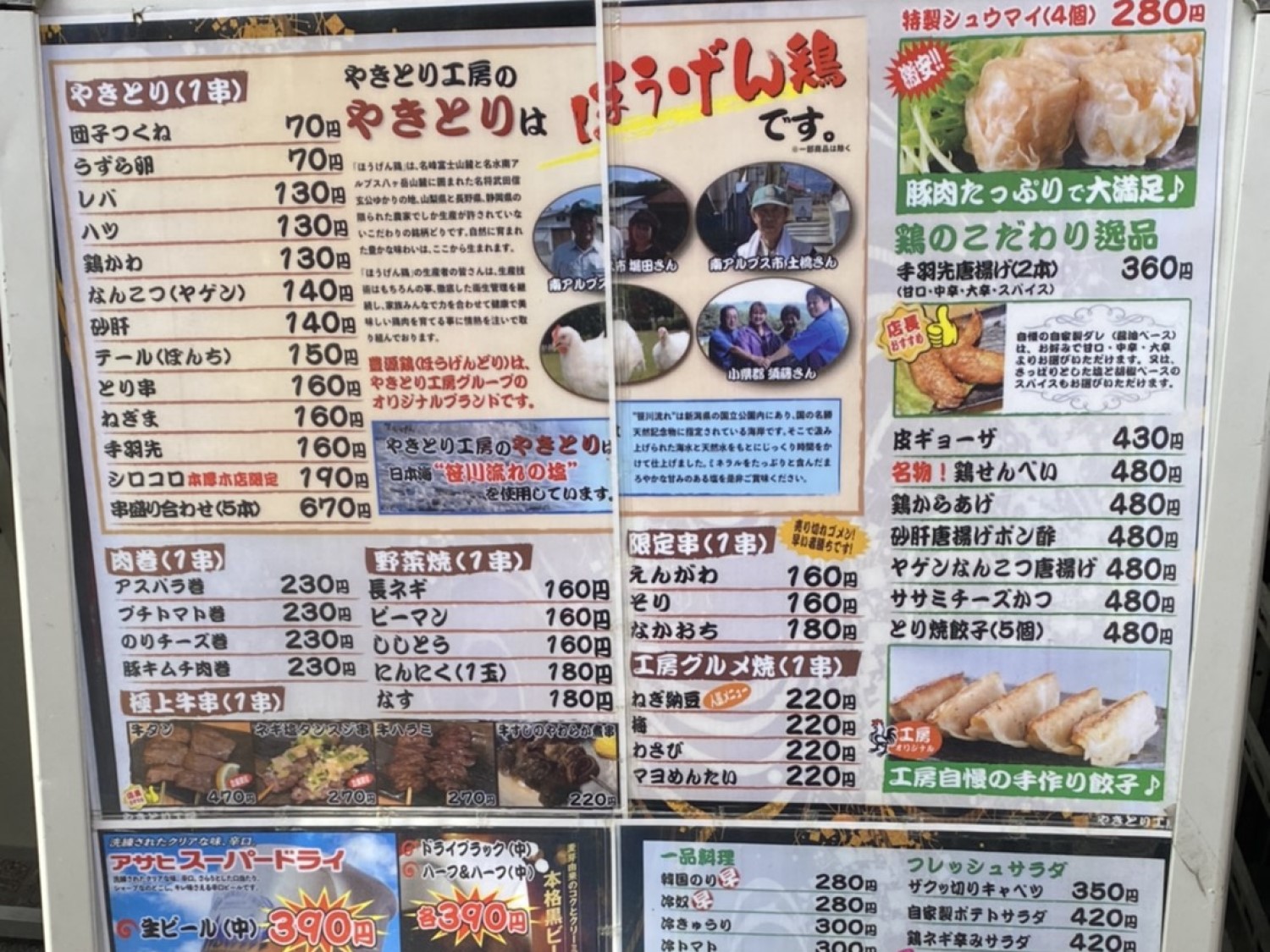行くと必ず注文するお料理はこだわりの銘柄「豊源(ほうげん)鶏」の焼き鳥盛り(5本)は、外はカリッ♪中はジューシーで美味しい♪「笹川流れの塩」が美味さを引き立てますよ!